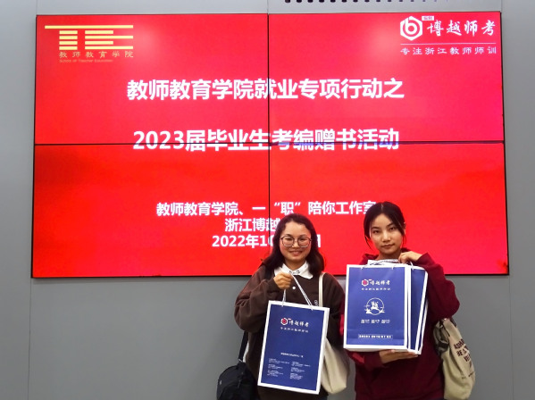 为进一步促进毕业生就业,10月13日下午,教师教育学院、一“职”陪你工作室开展就业专项行动之2023届毕业生考编赠书活动,本次活动在教师教育学院一楼大厅举行。