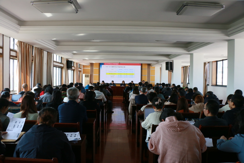 会上,学院党委副书记朱竞以“增强危机意识 全力做好学生考研工作”为主题,通过横向和纵向比较,全面解读了近三年我院学生考编、考研及高质量就业情况。通过数据分析,让老师们充分认识学生就业工作面临的严峻形势,尤其是当前毕业生数量增加、社会缩编现状、其他专业“挤压”就业空间等情况给师范生高质量就业带来的困难。朱竞同时发出“考编与考研四问”,以自问自答形式剖析了学院部分教师关于考编与考研的困惑,并做出了正面回应,引导广大教师提高对学生考研工作的认识,在学生生涯规划指导、课堂授课内容、实习实训安排等环节有目的地部署和落实,为学生高质量就业提供全力支持。会上为每位教职工下发了近三年我院学院考编、考研及高质量就业情况数据表。