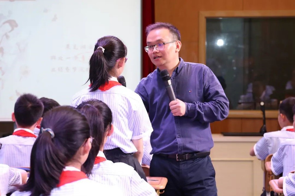他曾写了《尚爱此山看不足》一文来赞颂爱山小学,认为“爱山小学就是块神奇的宝地”。在爱山小学,他遇到了耐心矫正他普通话语音的特级教师邵起凤老师,遇到了会在教师私人订阅的杂志上用记号笔写上订阅者名字的门卫老杨头,还遇到了食堂里可爱的阿花阿姨……经历了十多年的沉淀与磨练后,他从江南来到岭南,担任深圳市福田区园岭实验小学校长。