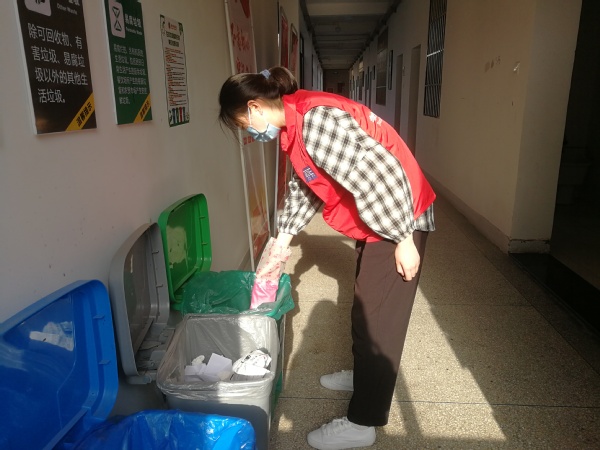 检查开始前,志愿者们提早来到检查地点,做好充分准备。在工作开始后,志愿者们先仔细地对空调、水龙头旁的节能节约标识进行了检查,对未贴上标志的地方进行了记录,随后又对垃圾分类工作进行了细致的整改。有些许同学因缺乏垃圾分类的意识,将未经分类的袋装垃圾胡乱投放,志愿者们及时对相关同学进行劝引,认真向其宣传垃圾分类对于保护环境,创建美好校园的意义,耐心一起将垃圾重新分类。此外,有更多的志愿者加入了整顿校内环境卫生的队伍,大家认真地扫除了落在走廊上、绿化带内的垃圾,礼貌地对丢垃圾的人进行提醒。
