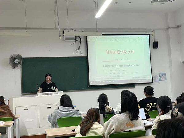 为了深入贯彻“两山理念”等环保思想,让绿色环保走进当代大学生的认知之中。十月中旬,在教师教育学院组织下,各年级各班在班级生活委员的带领下开展了“绿色学校创建知识主题学习”相关主题班会,带领同学们学习了《高校绿色学校创建知识须知参考》和《绿色学校创建行动实施方案》,在各个班级的班会上,生委详细地为同学们介绍了创建绿色学校的相关知识和注意事项,同学们也积极地献言献策,提出关于发展绿色学校的建议。也有部分班级在课后组织小组,开展“将学习内容结合生活实际落实”的活动。通过本次活动,贯彻落实了习近平生态文明思想和科学发展观,牢记“绿水青山就是金山银山”理念,不断提升我校学生、教工文明素养,加强校园绿色生态文明建设。