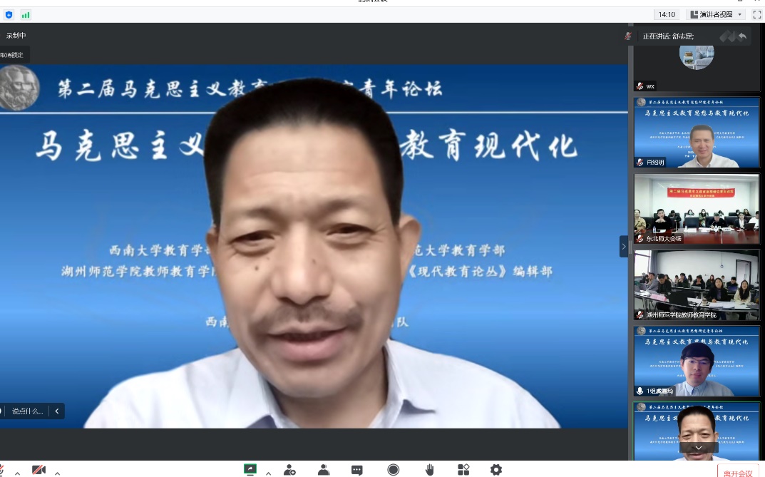2022年11月20日,第二届马克思主义教育思想研究青年论坛由西南大学教育学部、东北师范大学教育学部、北京师范大学教育学部、优米app怎么下载软件教师教育学院、华南师范大学教育科学学院、《现代教育论丛》编辑部联合主办,由西南大学教育学一流学科建设团队承办。本次论坛的主题是“马克思主义教育思想与教育现代化”。论坛以线上与线下相结合的形式举办,优米app怎么下载软件教师教育学院分会场设在11-413会议室。舒志定教授、肖菊梅博士、王贤德博士、蔡正道博士等学院师生共同参与了此次论坛。