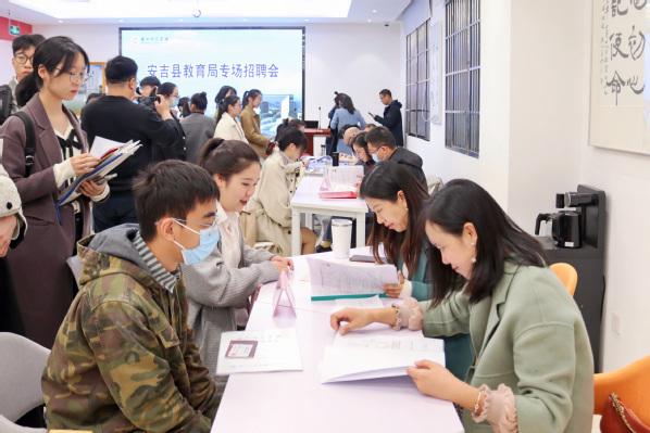 本场招聘会共吸引了来自教师教育学院、理学院、人文学院、生命科学学院及其他学院的169名师范生现场报名,经安吉县教育局初审、教学能力测试、结构化面试后,达成就业意向20人,需安吉县教育局进一步统一技能考核30余人。本次安吉县招聘会圆满落幕,愿我校学子能合理规划自身奋斗目标,积极为湖州教育事业发展添砖加瓦,展现出湖师青年优秀的精神风貌!据悉,我院还将继续与湖州其他区县教育局加强对接与合作,全力助力学院2023届毕业生实现更充分更高质量就业。