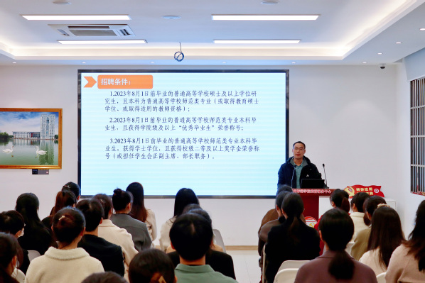招聘会前,安吉县教育管理服务中心副主任密军良对本次校园招聘进行宣讲,对我校应届毕业生积极报考安吉教师岗位表示热烈欢迎,并对本次招聘会的招聘对象条件、人才保障政策、良好薪资待遇、面试基本流程进行介绍。