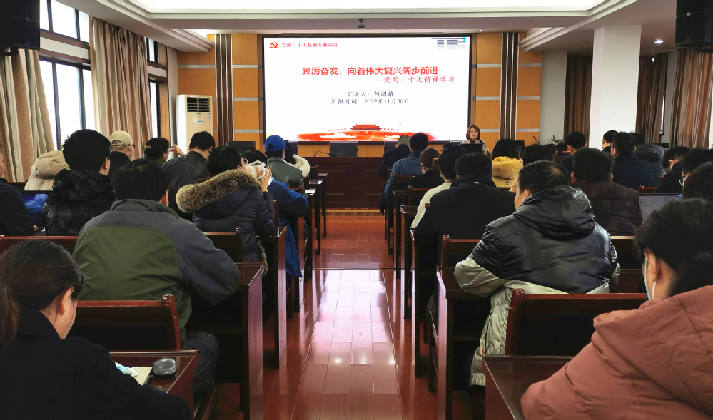 11月30日下午,在学院10-512会议室,学院党委书记何阅雄为全体教职工做“踔厉奋发,向着伟大复兴阔步前进”党的二十大精神专题宣讲。学院党政班子、党委理论学习中心组全体成员,全体教职工参加本次党的二十大精神学习。
