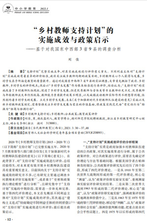 《“乡村教师支持计划”的实施成效与政策启示——基于对我国东中西部3省9县的调查分析》指出,“支持计划”的实施改善了乡村教师队伍现状,促进了乡村学生发展,但是优秀教师与音体美等专业教师补充不足、优秀教师与年轻教师流失率仍然较高、教师能力素质提升效果不明显,以及城镇流动教师实际作用不理想等问题,依然制约着乡村学生的发展。立足乡村学生发展,未来《关于加强新时代乡村教师队伍建设的意见》实施以及新乡村教师政策制定,需要坚持关注乡村学生发展与需求的价值基础,将政策实践范式由“肯定性行为”转换为“协商与协调行动”。