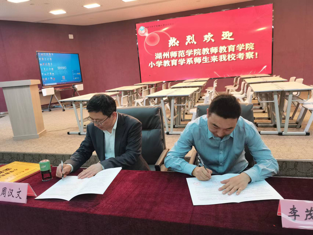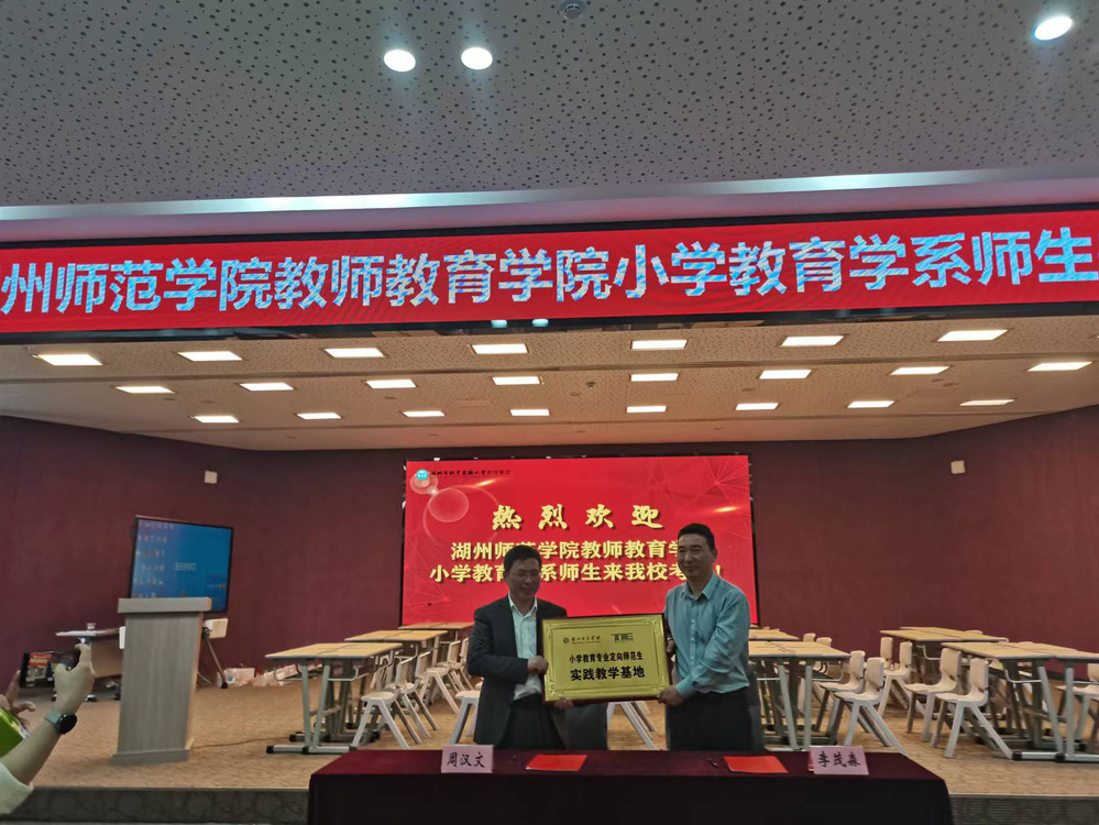 2023年4月19日,李茂森副院长、小学教育学系班子及部分师生赴湖州市织里实验小学教育集团开展“小学教育专业定向师范生实践教学基地”共建活动。
