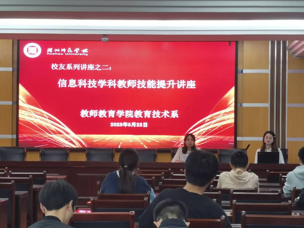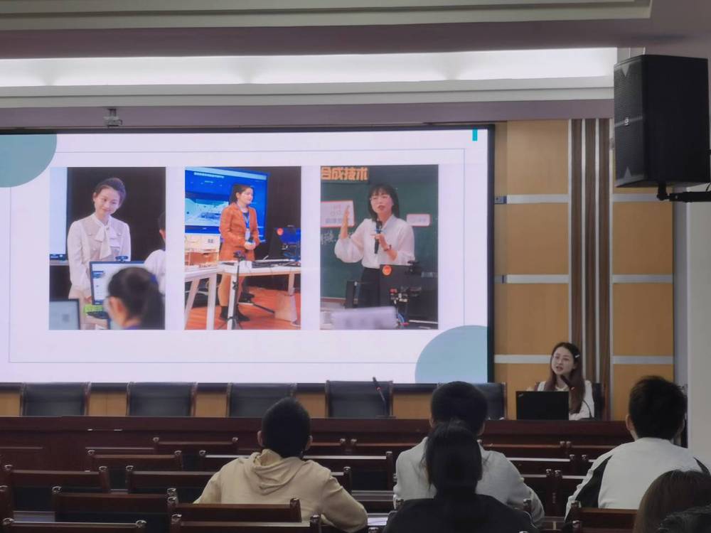 2023年5月22日晚18:00,在优米app怎么下载软件中校区10-512学术报告厅举办校友系列讲座。此次讲座特邀教育技术系校友——金华市外国语实验学校金梦珂老师为本专业学生作了师范生技能提升经验分享。我系相关负责老师出席本次讲座,全体学生参与其中。