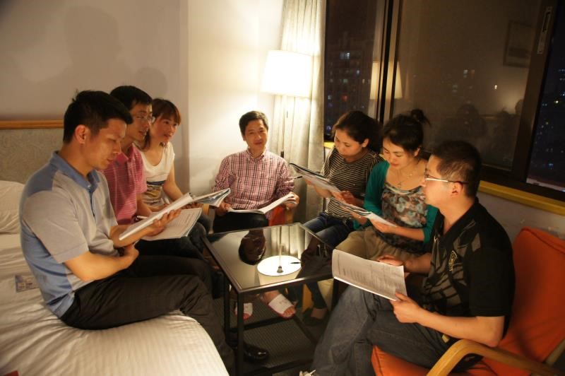 范新林与学员“冬夜研课”(左四)