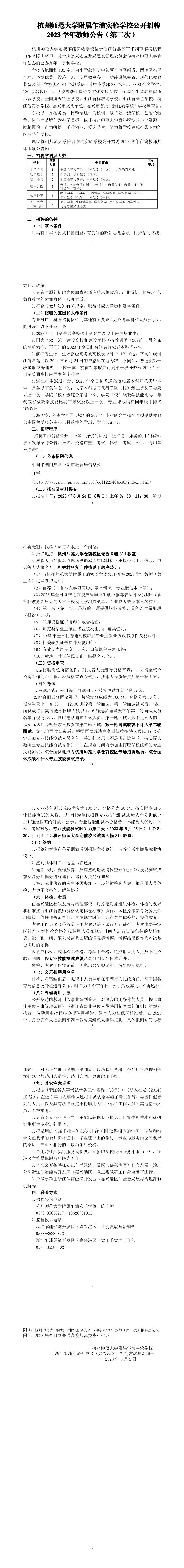 【一“职”陪你】杭州师范大学附属乍浦实验学校公开招聘2023学年教师公告(第二次)