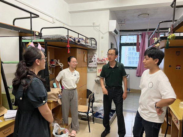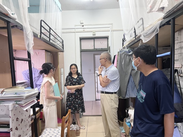 6月8日晚18:30,我院党委书记何阅雄,副院长李茂森,党委副书记朱竞,毕业班班主任、辅导员前往本科和研究生毕业生寝室进行走访慰问,为2023届毕业生们送去温暖、关怀以及对他们未来前程美好的祝愿。