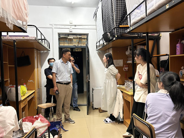 党委副书记朱竞一行在走访过程中关心了学生关于未来发展的想法,为同学送来暖心祝福,叮嘱学生关注毕业教育安排,并且为学生提供就业考编等方面的建议。