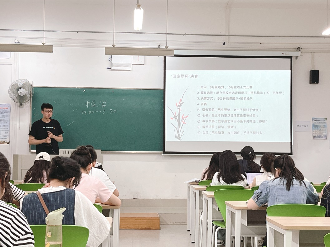 为进一步提升师范生教学技能,教师教育学院研究生第二党支部与研究生第三党支部于2023年6月13日在32-105开展联建活动,共同举办了“田家炳杯”全日制教育硕士专业学位研究生师范技能大赛经验分享会。本次会议由研究生第三党支部副书记任婉卿主持,“田家炳杯”一等奖获得者诸洪程学长进行师范技能大赛的经验分享。