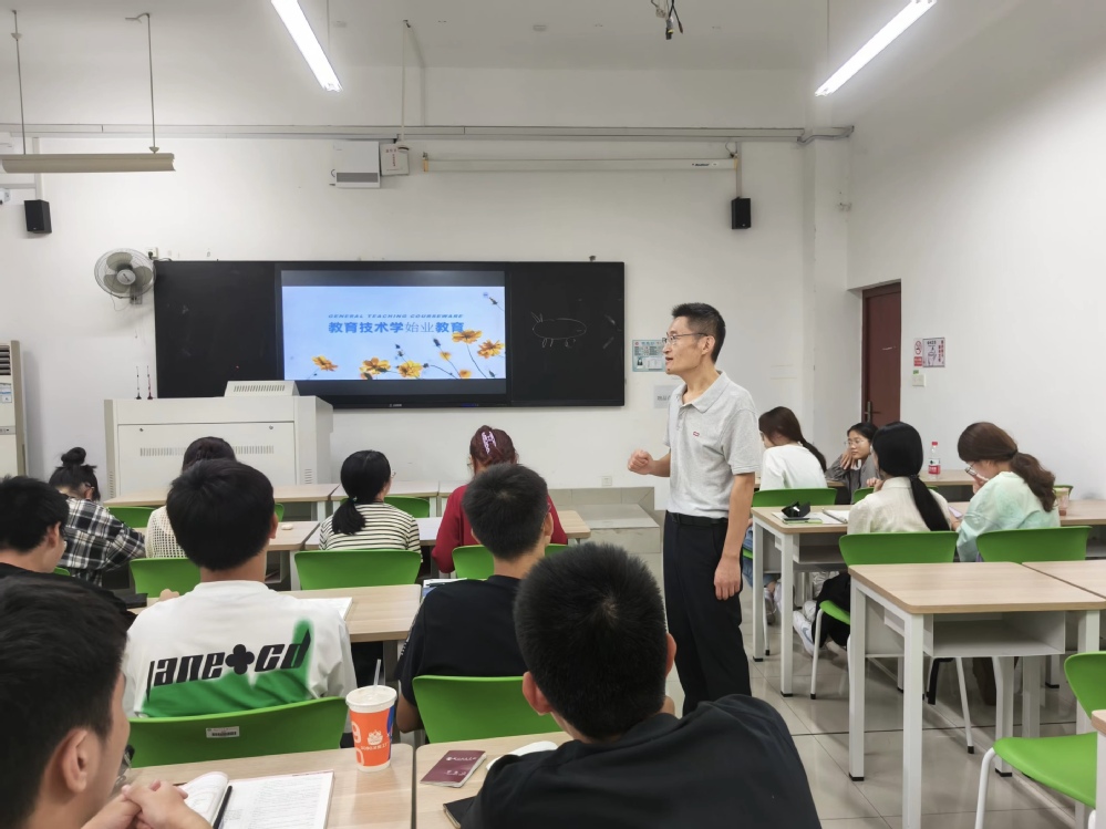 在教育技术学系2023级新生专业教育中,系主任邱相彬老师主持了讲座。邱老师鼓励同学们在学业之外发展兴趣爱好,提升思维高度,并提出了未来就业岗位存在缩减的可能,鼓励同学们升学考研深造。他还强调了建立自身信念、制定清晰的职业规划、持久努力与学习、集中学习精力、珍惜学习时间等重要原则。