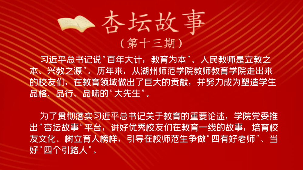 当黄玉平校友回忆起90年代那段峥嵘岁月时,采访组能明显感受到他目光灼灼,眼里充满对青年求学岁月的怀念。湖州师范,是他坚守教育梦想的起航地,对他的成长具有丰富且深远的影响,在这里他养成了严谨治学的态度,塑造了踏实豁达的心性,坚定了扎根基础教育的信念。