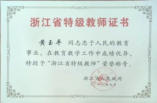 黄玉平,浙江省特级教师,正高级教师,湖州市小语会理事,浙派名师培养对象。曾获中国好校长,浙江省课改先锋校长,之江汇省级讲师团成员,浙江省教坛新秀,浙江省春蚕奖,浙江省科研先进个人,湖州市教学明星,湖州市五一劳动奖章,湖州市优秀共产党员等荣誉称号。