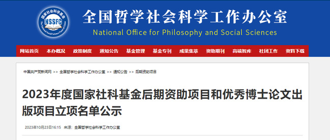 2023年10月,全国哲学社会科学工作办公室公示了2023年度国家社科基金后期资助项目和优秀博士论文出版项目立项名单。中心张震博士申报的“明代工夫课程的兴起与演变研究”项目立项为2023年度国家社科基金优秀博士论文出版项目。