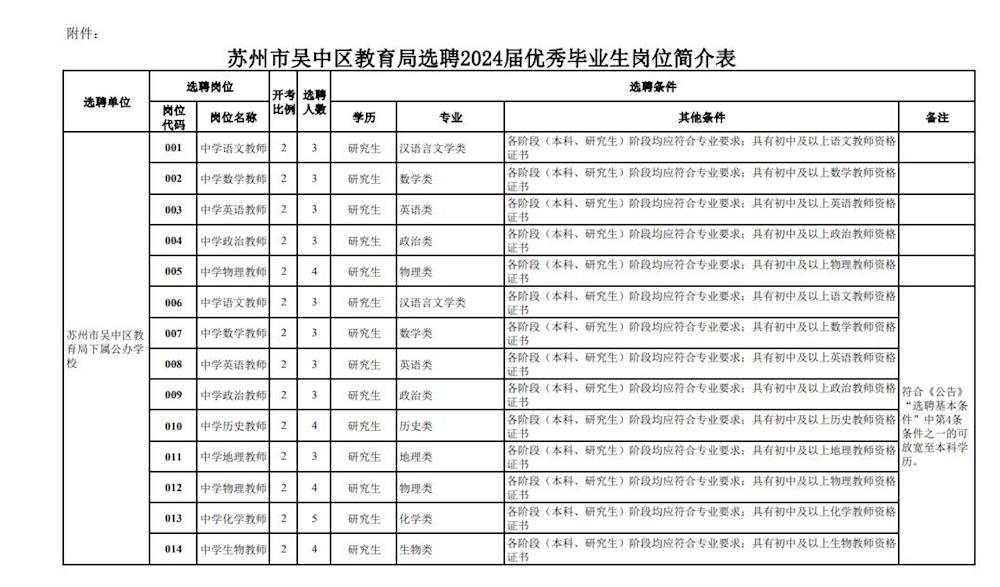 附件:苏州市吴中区教育局选聘2024届优秀毕业生岗位简介表