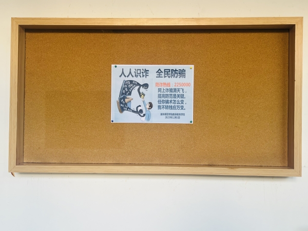 网络和科技发展迅速,诈骗手段也层出不穷,许多大学生因疏于防范,缺乏与诈骗相关的知识而落入诈骗陷阱。为提高我院学生的防诈能力,增强防诈意识,学院在楼宇范围内广泛张贴防诈宣传信息,各班也积极组织防诈宣传,争取达成“人人识诈,全民防骗”的目标。
