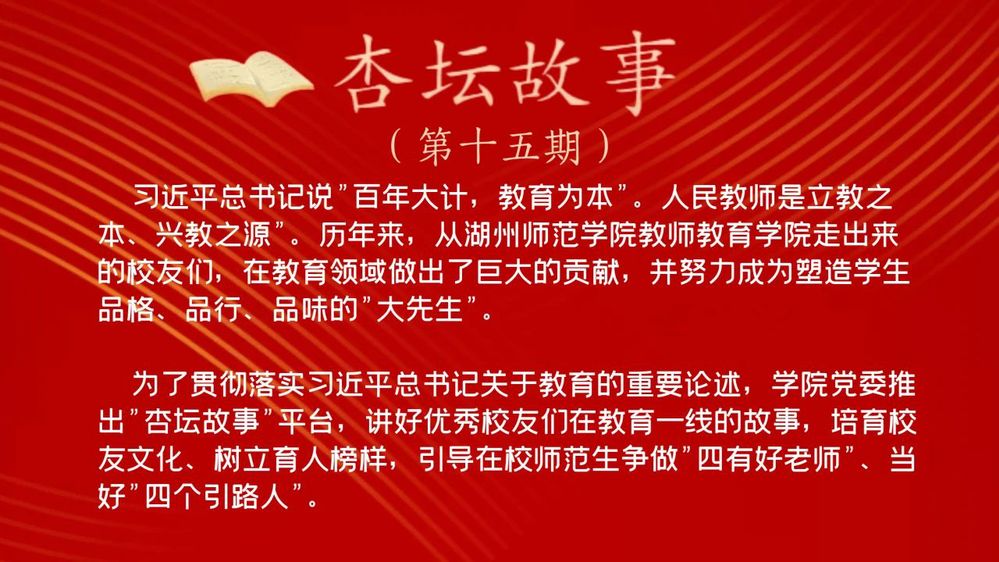 老师们强大的专业能力和专业精神让周建荣在湖州师范的三年学习受益匪浅。“现在在培养师范生时常常强调核心素养的落地,而那时老师们就已经向我们强调要落实‘三笔一话’的核心素养了,在这方面湖州师范的教学眼界领先了四十多年。”正如周建荣所说,伟大的教育总是走在最前沿。那时湖州师范对周建荣的教导和培养,让他在未来拥有了更高的教学水平的同时,也塑造了他用“爱”教学的教育理念:做有爱心、有激情、有思想的老师,“湖州师范的老师在学生实习期间也时刻陪伴着,十分注重学生的实践应用和经验积累。”周建荣想这应当就是老师们对学生的爱吧。回忆往昔,让他最念念不忘的不是老师们在专业上对他的指导和培养,而是在学业上、生活上的陪伴,老师就如同父母一般陪伴着、关注着学生。我们都知道“文明其精神,野蛮其体魄”一言,而当时的湖州师范为了让学生们养成强健的身体,培养自律的习惯,总会安排老师每天带领着周建荣和他的同学们沿着学校的道路进行晨跑。如朝阳一般的青春少年,汗珠从额头滚滚落下,迈着脚步,迎着阳光,一步一步踏在被照亮的路上。生活中点点滴滴的细节往往是最令人难以忘怀的,那时食堂中饭的费用对于很多学生来说是一笔不小的开销,然而对于许多年轻、饭量大的男生来说,这顿饭却又无法满足自己的胃口,周建荣回忆着缓缓道来:“老师特别关心我们,在困难的时候经常会给予我们一些帮助。”回忆起在母校学习的时光,周建荣脸上除了对恩师们的感恩与怀念,还有着对自己专业的自信与骄傲。