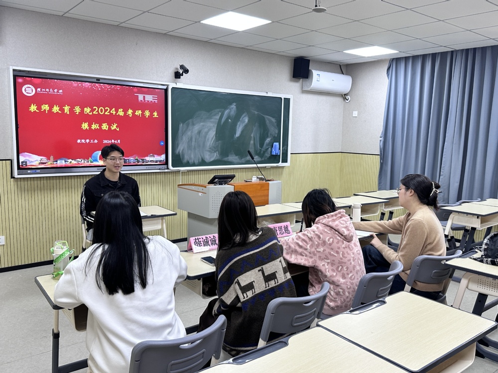 为助力2024届考研学生更好地备考面试,增强应试本领与技能。3月22日中午,教师教育学院在10-508微格教室开展了考研模拟面试活动,邀请上岸研究生同学进行面试经验现场指导传授。