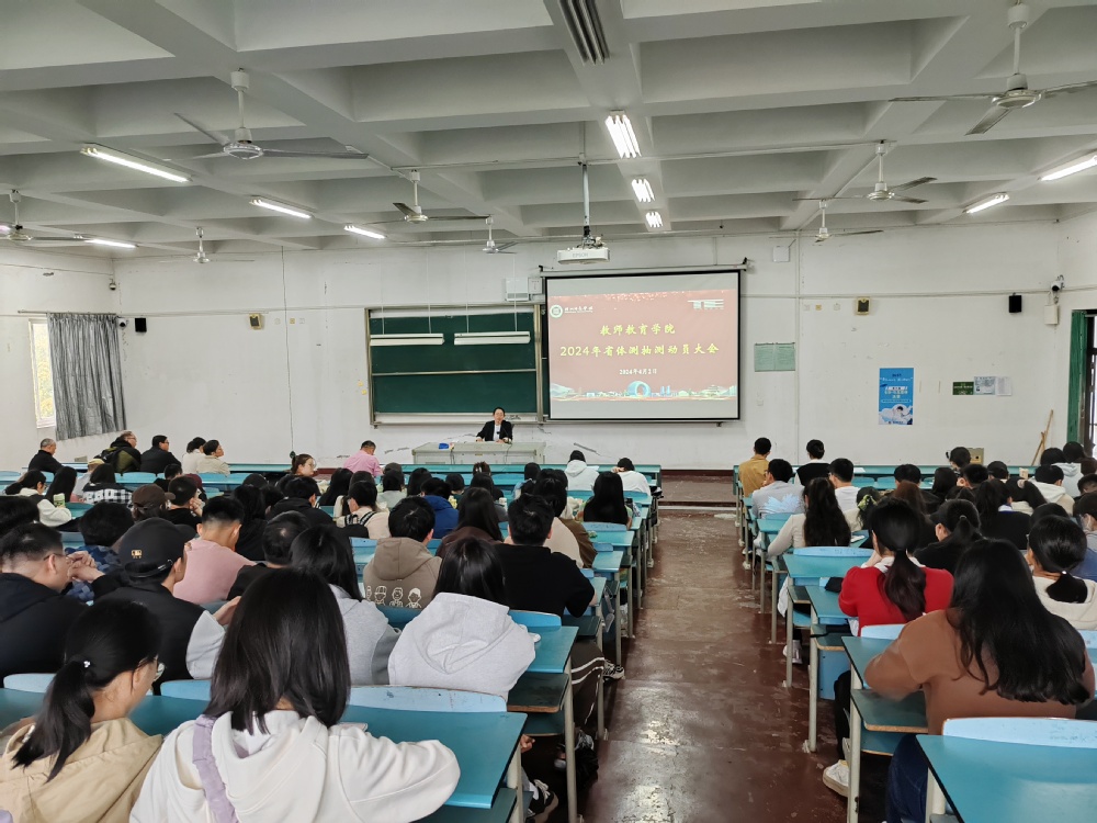 为严格落实学生体质健康水平抽测工作,教师教育学院多措并举助力完成2024年省体质健康水平测试工作。学院领导班子,班主任、辅导员,全体被抽测学生积极参与相关工作。