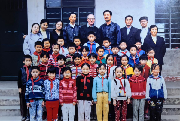 郭美阳(后排左一)和Mr.Ray(后排中者)一起到乡村小学听课