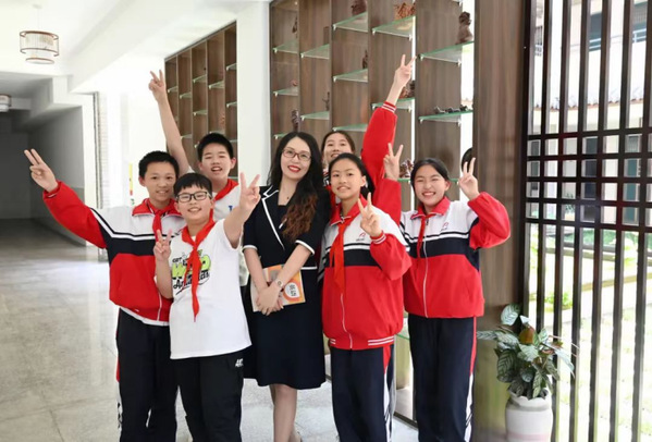 三尺讲台之上,她也第一次在自身的教育实践中体会到了学生给予的“评价”的力量。一双双求知若渴的眼睛,迸发的是对知识最坚定的渴望,更是对教师最挚爱的期望。她在一线教学的15年间,带领着一届又一届的学生们建立起对英语的认知与热爱。她寓教于乐,倾囊相授,和学生们建立了亦师亦友的亲密且信任的联结。在教学过程中,她将课堂与游戏勾连,与生活关联,注重为学生打造充分的学思、学用、学创空间,让学生深度感受玩中学、用中学、学中思、学中创的英语学习魅力。她说:“在英语课堂中需要传递给学生的不仅是基础的语言能力与文化意识,更需要传递一份撬动学生自主学习、自由思维、主动创新的方法和力量。”