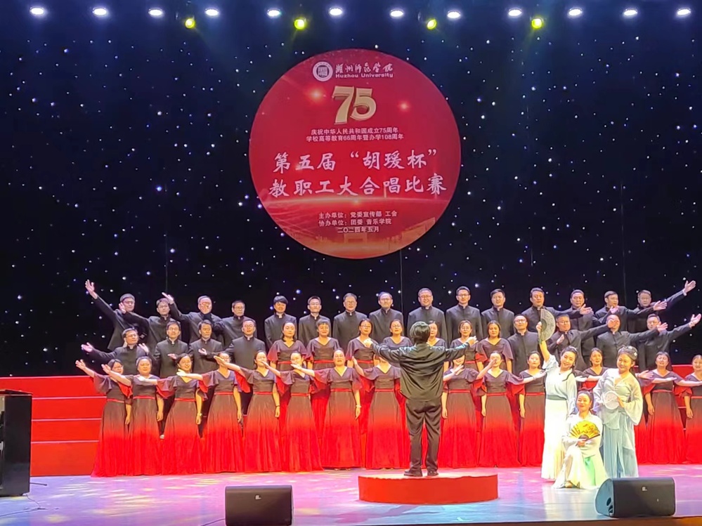 本次比赛旨在庆祝中华人民共和国成立75周年,学校高等教育66周年暨办学108周年。在比赛过程中,教师教育学院合唱队选择了《领航》和《上春山》两首歌曲,老师们以饱满的热情、昂扬的精神、深情的演唱,表达爱党爱国的赤诚情怀,展现教师教育学院积极向上的昂扬斗志和团结进取的精神风貌。最终在全校所有参赛队伍中名列第一名,荣获特等奖,捧得“胡瑗杯”。