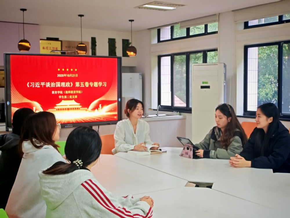 《习近平谈治国理政》第五卷集中记录了以习近平同志为核心的党中央团结带领全党全国各族人民在全面建设社会主义现代化国家新征程中的实践探索和理论创新,系统阐述了中国式现代化的鲜明特色、本质要求、重大原则和一系列战略部署,饱含习近平总书记治国理政的深邃思考和使命担当,具有重要的思想力量、真理力量和实践指导意义。在学习过程中,各师生党员结合自身学习与工作实际深入交流研讨,畅谈心得体会。