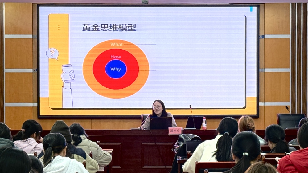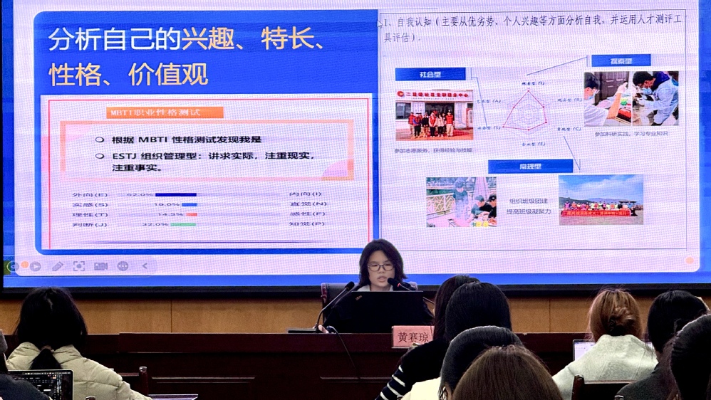 经济管理学院教师谭亭亭从“为什么参与职业规划大赛”到“如何打造优秀参赛作品”,系统讲解了职业探索思路与作品核心模块设计方法,如职业目标设定、路径规划、能力提升计划等,以专业视角为同学们指明备赛方向。