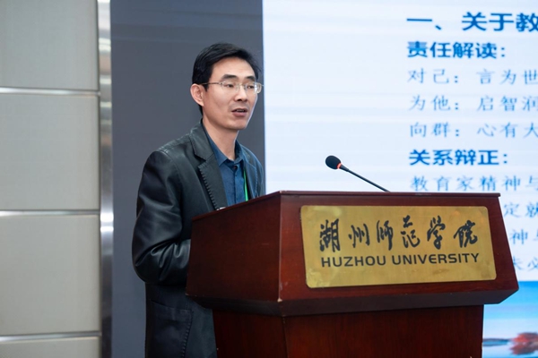 湖南师范大学容中逵教授作题为“尽责是乡村中小学教师践行教育家精神的重要体现”的主题报告。他从教育家精神的责任内涵、重提教师责任的理由、教师责任的基本释义及尽责行为表征四方面展开,为乡村教师践行教育家精神明确了行动路径。