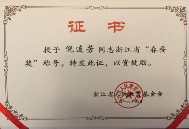 倪连芳被评为“浙江省‘春蚕奖’”