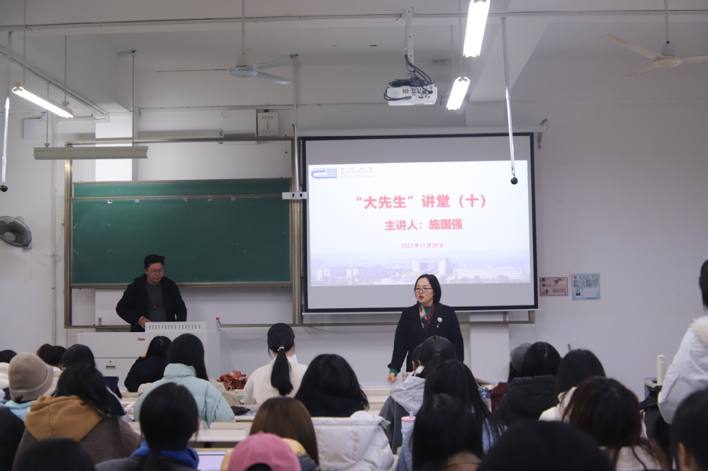 11月20日下午,教育学院“大先生”讲堂(十)在31-115教室开讲,本期讲堂特邀湖州市月河小学校长、高级教师施国强为主讲嘉宾,为2023级小学教育(语文方向)学生作“小学语文阅读策略单元教学指导”专题讲座。小学教育专业负责人马利云主持活动。
