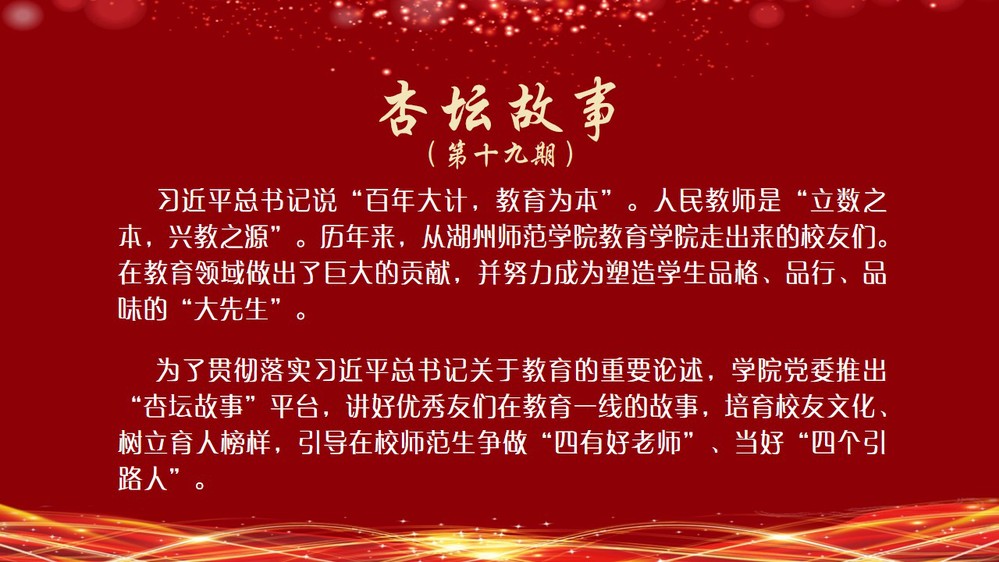 没有波澜壮阔的梦想宣言,只有少年人对未来一份务实又略带好奇的憧憬,就是这样一份朴素的初心,引领他步入了湖州师范学校的校门,开启了一段奠定其人生基色的旅程。