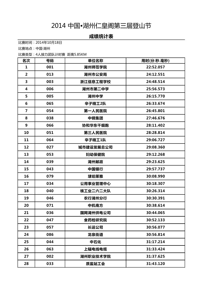 据悉,本次比赛有来自湖州市的89个单位的356名职工参加比赛,全程采用接力的模式,共5.85公里的山路由4名选手合力完成。