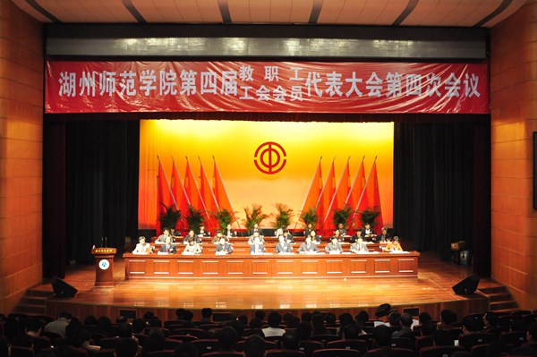 在学校深入学习贯彻落实党的十八大、十八届三中全会精神,省委十三届四中全会精神,全面加快“湖州大学”建设步伐的大背景下,5月10日上午,我校隆重召开四届四次教职工、工会会员代表大会。大会在庄严的国歌声中开幕,共有158名代表、26名列席代表参加会议。“双代会”主席团全体成员在大会主席台就坐。会议由校党委副书记钱坤方主持。