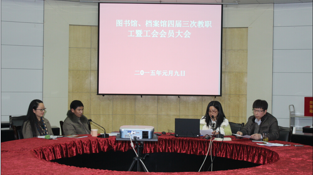 1月9日下午,图书馆、档案馆召开四届三次教职工暨工会会员大会,本次大会应到代表50人,实到代表45人,并征集到提案一份。
