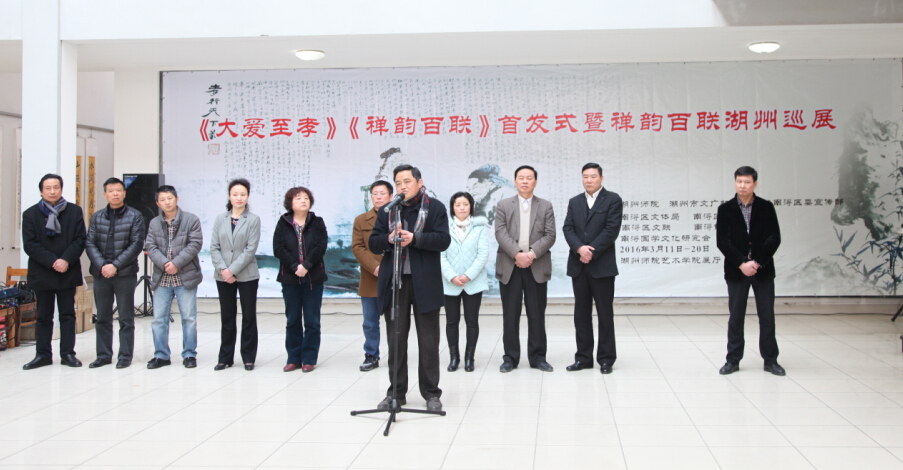 展览开幕式上,湖州市及南浔区有关单位的领导出席并致辞,来自三县两区文化界的诸多学者、专家和名人到会祝贺。我校校院有关领导及百余名师生参加了开幕式,并共同欣赏楹联作品。此外,开幕式上还举行了《大爱至孝》、《禅韵百联》两本新书的首发与赠书仪式。