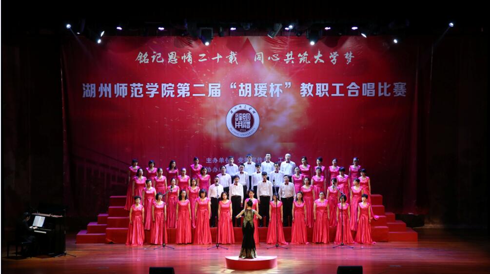 为了参加本次比赛,分工会组织两馆老师进行了长达2个月近20次的排练。大家利用中午休息时间,在艺术学院杨晨老师专业而又敬业的精心指导下,勤学苦练,从合唱的“门外汉”慢慢转变成具有一定专业水准的合唱团队。根据比赛要求,每个参赛部门要唱两首歌,一首是校歌,另一首是自选歌曲,我们选择了具有行业特色的“书香天堂(图书馆之歌)”作为我们的自选曲目。“我们是光荣的图书馆人,坚守在文化传承的岗位上……”一句句歌词唱出了我们职业的自豪感,也渗进了我们对图书馆工作的热爱,更抒发了我们对学校20周年的发展变迁和图书馆事业的无比深情。