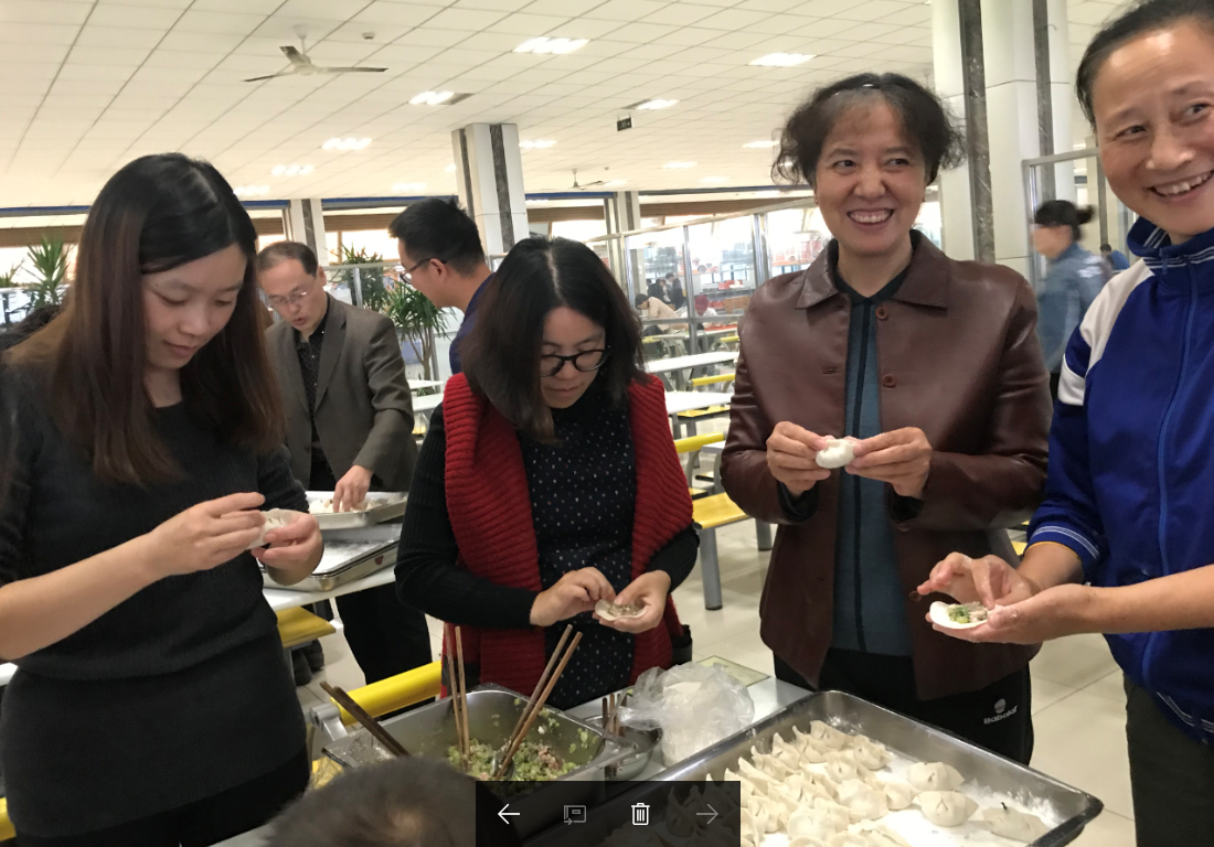 从下午四点一直到六点半,东校区的教工食堂呈现出一片热闹祥和的景象,很多教职工带孩子前来参加,新来的教工与原求真学院的教工相互攀谈,逐渐熟识。学院党委书记韩祥临早早来到,亲自指导不会的教工学习包饺子技巧,院长王培良在百忙中抽空去现场看望了大家;副书记成永军热情为教工们服务,忙前忙后。