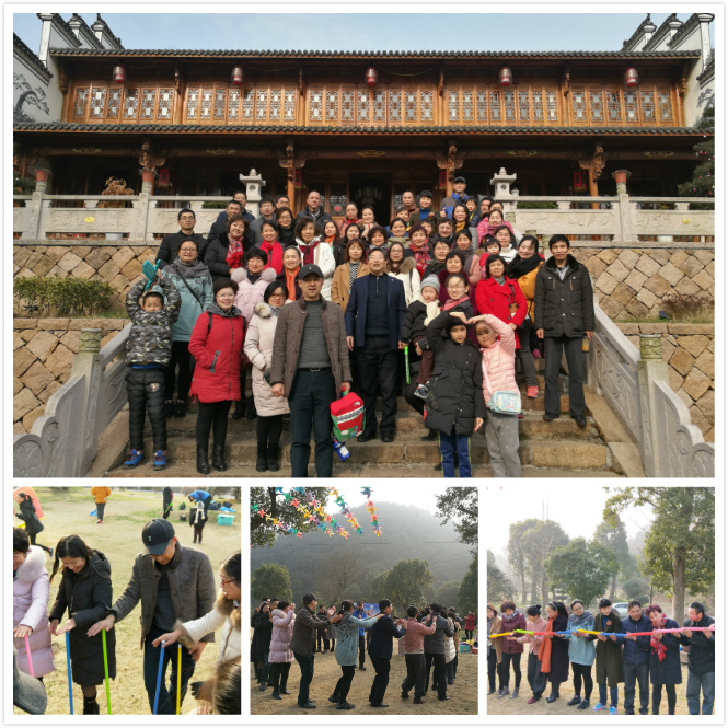 2018年元旦,新年第一天,图书馆分工会组织全体教工赴埭溪驾云山庄开展户外拓展活动。驾云山庄依山傍水,空气清新,风景宜人。老师们有的漫步小园香径,有的品茗谈心,大部分老师则是参与了丰富多彩的游戏活动。游戏中大家齐心协力,密切配合,完成了一个个任务,整个过程笑声不断,大大释放了心情,并以此欢庆新年。