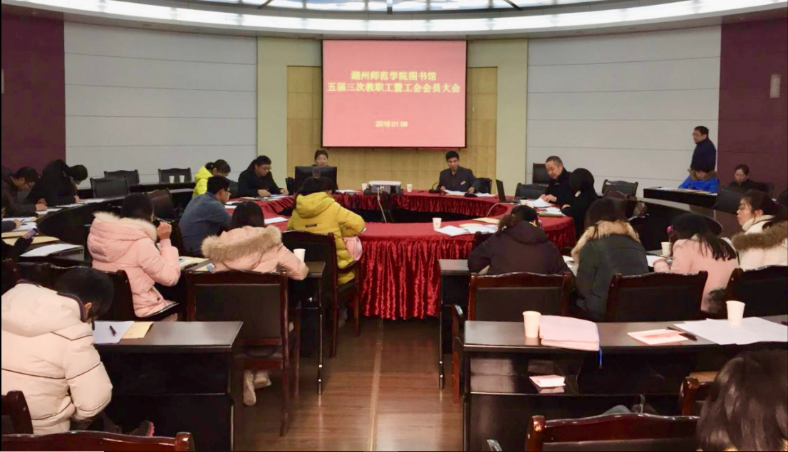 1月8日下午,图书馆五届三次教职工暨工会会员代表大会在西校区沈左尧图书馆410会议室隆重召开。会议由图书馆党总支书记陈六松主持,全馆教工共45人参加了会议。