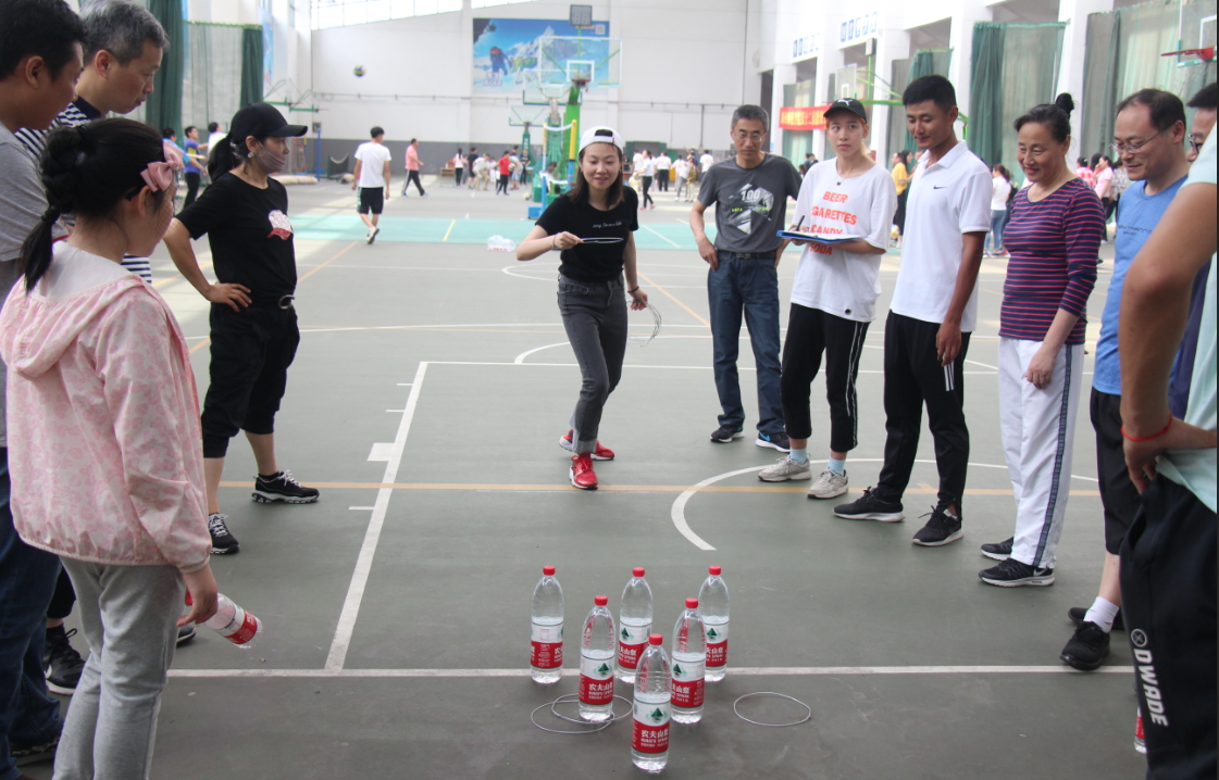 运动会共设10个集体项目:引球入翁、发球比赛、穿针引线、趣味套环、海底捞鱼等;个人项目:跳绳和踢毽子。集体项目赛的是团队精神。各代表队凭借着团队协作,秩序井然,不但挑战着智慧与体力的角逐,还考验了团结与协作的顽强比拼,充分体现出我校教职工的良好精神风貌,营造了生动活泼、积极向上的校园氛围。