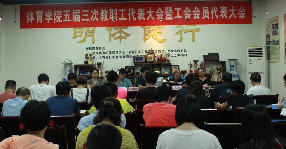 9月20日晚上,体育学院五届三次教职工暨工会会员代表大会圆满结束,会议由学院党委副书记马德华主持。?xml:namespace>