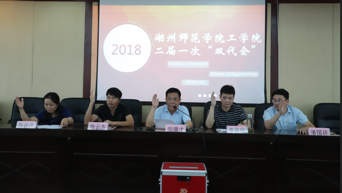 工学院二届一次教职工暨工会会员大会于2018年9月26日在25-104隆重召开,全院教工参加了会议。本次会议由学院党委书记陆瑞才主持。