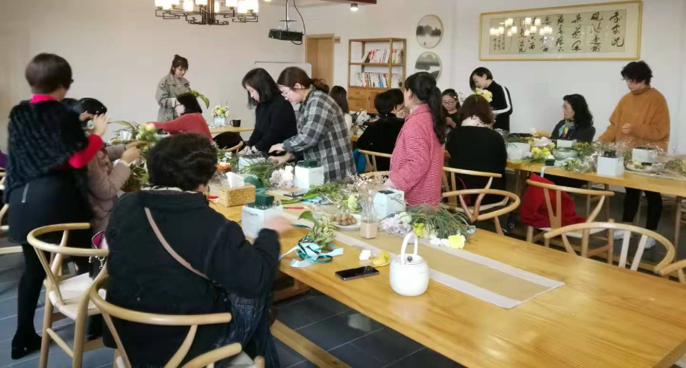 当天下午,参加活动的女教工来到位于仁皇山脚下的一家瑜伽培训教室。花艺培训师首先对花艺理论知识进行了简单介绍,包括插花的特点、插花的基本分类,以及一些送花的礼仪禁忌等。随后,在培训师的指导下,开始插花实践。浪漫的玫瑰,高雅的百合,零星点点的满天星,以及其它各色花卉通过女教工灵动的剪裁,精巧的搭配,错落的布置,完成了一盒又一盒美丽别致艺术插花。