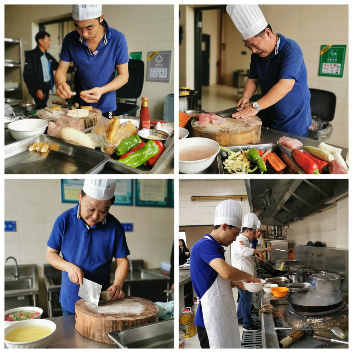 本次选拔赛严格按照正式竞赛相关流程设置,参赛选手需在规定时间内完成规定工作套餐及接待工作套餐的制作,来自三校区各餐厅、校外托管餐厅共计20名厨师参赛。活动现场,参赛厨师纷纷全力以赴,竭力展示自己的刀功和烹饪技术。场地外,评审员与餐厅员工一起主动做好维持秩序等保障工作。