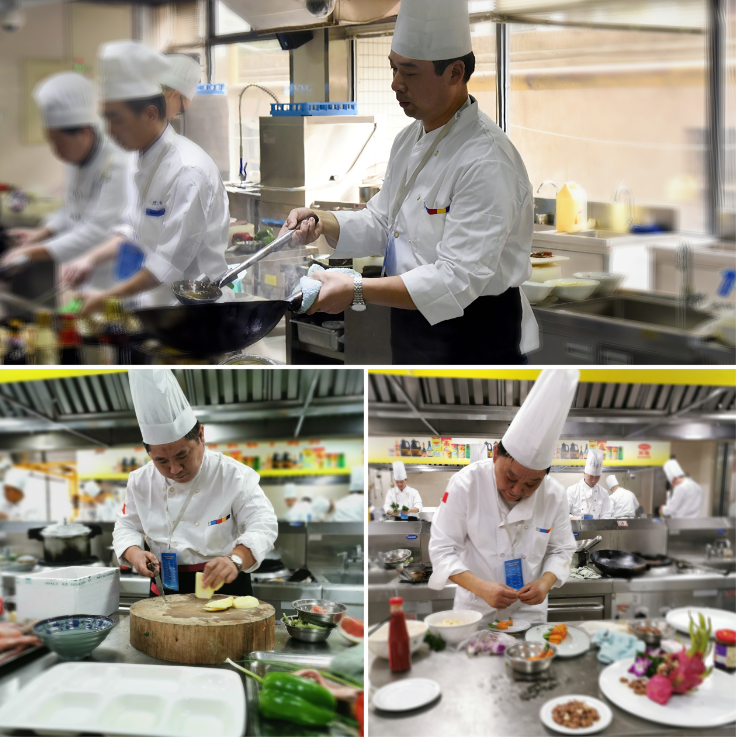 本次比赛项目均为中式菜肴,设规定原料规定菜和自选原料自选菜,每位选手要在120分钟内制作完成两个套餐。比赛中,我校厨师全力以赴、团结协作,充分发扬师院人积极向上的精神面貌,最终荣获团体三等奖。
