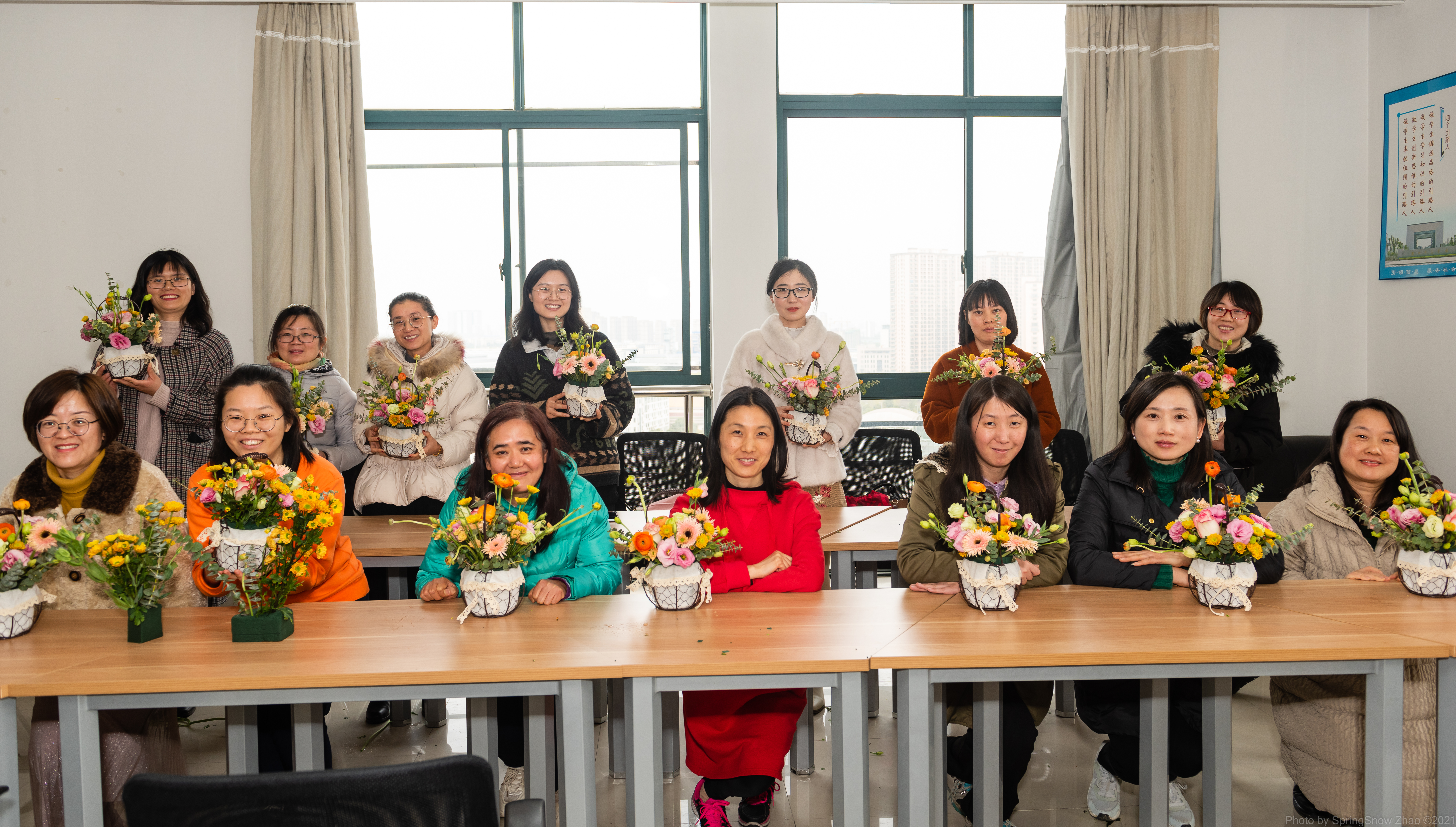 为庆祝第111个国际妇女节,丰富教工业余生活,3月10日下午,信息工程学院组织全体女教工在本院教工之家上了一堂插花体验课程,课程活泼生动,愉快与欢乐过程中收获创新灵感。